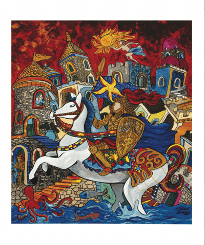 Stampa su tela a tiratura limitata, firmata dall’autore con timbro a secco